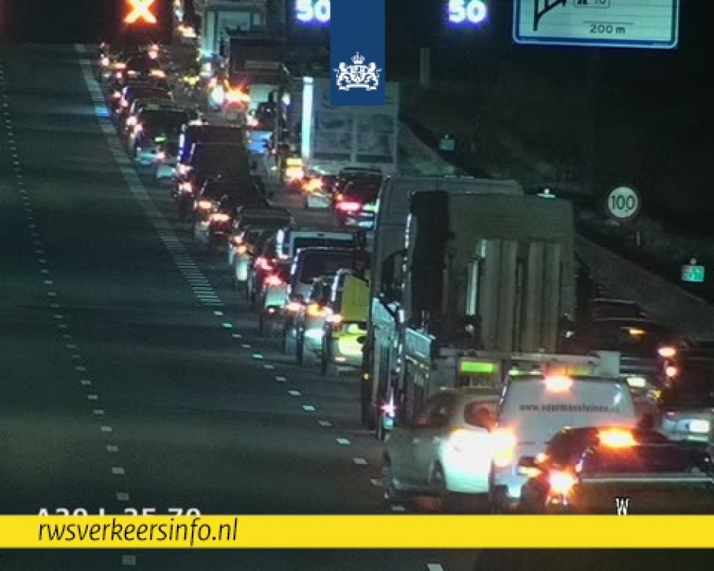 Tegelijk is op de A16 bij Rotterdam-Feijenoord richting het noorden een ongeluk gebeurd, evenals op de A20 bij het Kethelplein, richting Hoek van Holland. Op die plekken loopt de vertraging op tot zeker een half uur.