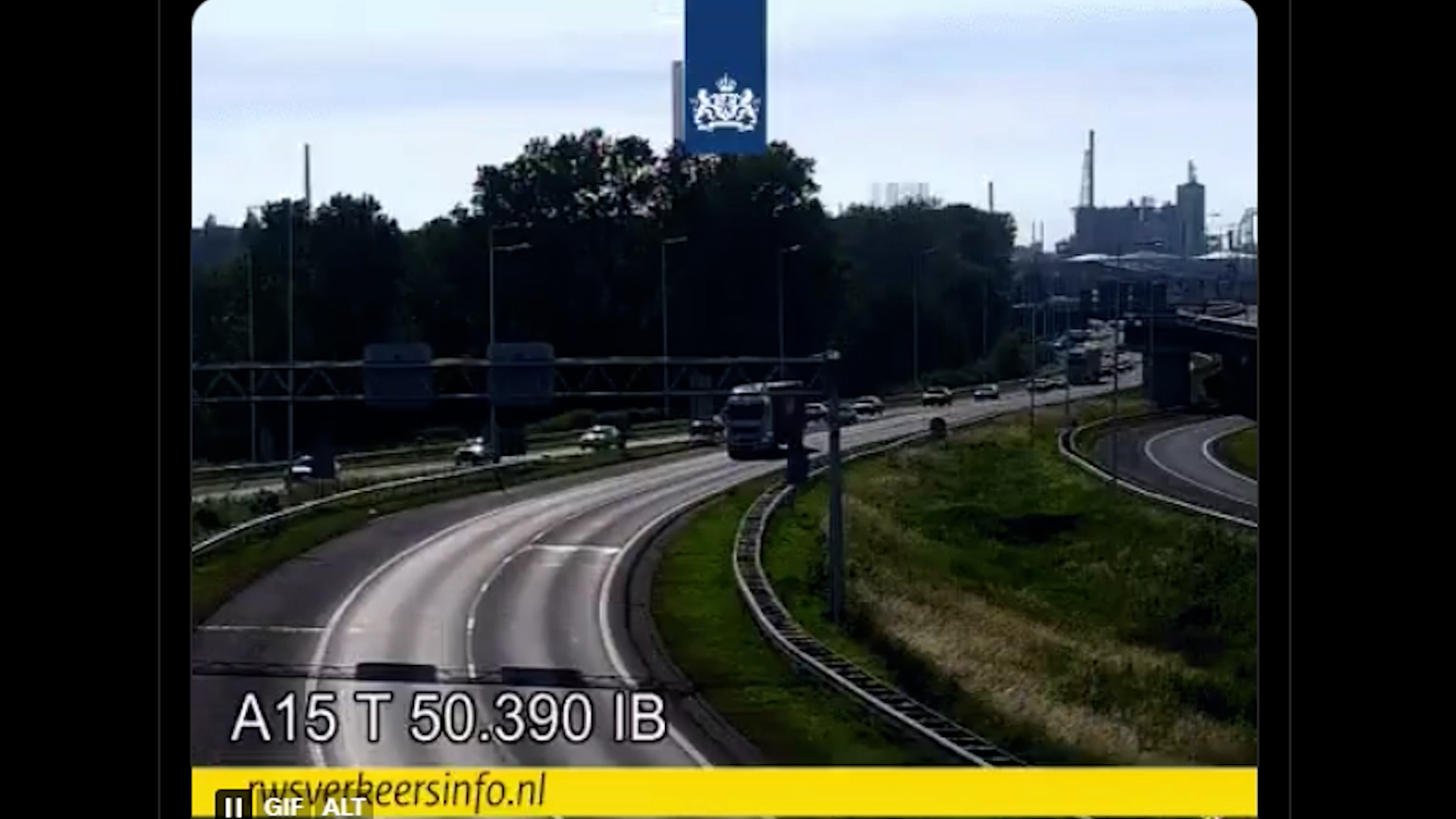 Rijkswaterstaat meldt dat het verkeer wordt omgeleid via de A15, A16 en A20.