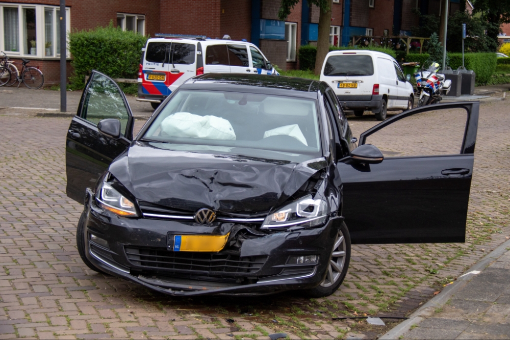De politie zette een achtervolging in. Op de kruising tussen de Philips de Groenestraat en de Van der Werffstraat ging de bestuurder van de Volkswagen de fout in. Hij botste eerst tegen een lantaarnpaal en daarna tegen een bestelbusje.